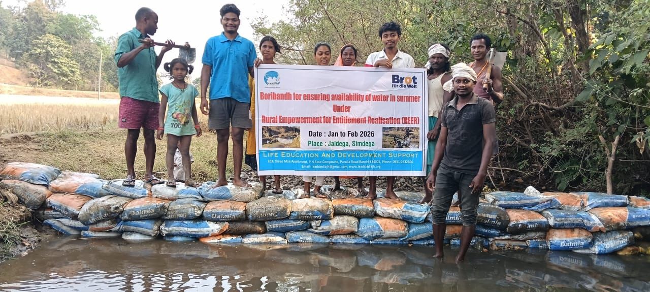 Simdega: जलडेगा प्रखंड के तुरुपडेगा, टीनगीना और सिलिंगा डोंगीझरिया गांवों में लीड्स संस्था की पहल से जल संरक्षण की दिशा में सराहनीय कार्य किया गया है. संस्था द्वारा कुल पांच स्थानों पर बोरी बांध का निर्माण कराया गया, जिससे अब ग्रामीणों की खेती और दैनिक जीवन में सकारात्मक बदलाव की उम्मीद जगी है. इस कार्य में खास बात यह रही कि लीड्स संस्था ने जहां आवश्यक सामग्री के रूप में बोरी उपलब्ध कराई, वहीं गांव के लोगों ने सामूहिक श्रमदान कर इन बांधों का निर्माण किया. इस सामूहिक प्रयास ने गांवों में एकजुटता और सहभागिता की मिसाल पेश की है.