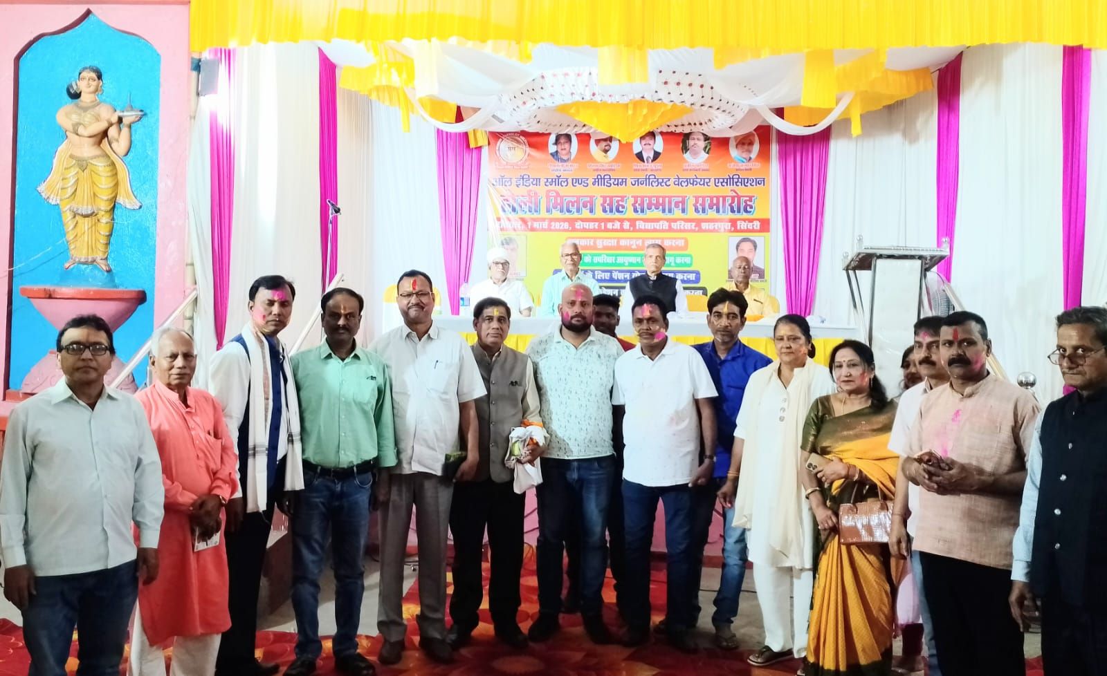 धनबाद: ऑल इंडिया स्मॉल एंड मीडियम जर्नलिस्ट वेलफेयर एसोसिएशन के तत्वावधान में धनबाद के सिंदरी स्थित विद्यापति परिषद भवन में होली मिलन सह सम्मान समारोह हर्षोल्लास के साथ आयोजित किया गया. कार्यक्रम का आयोजन जिला अध्यक्ष राहुल कुमार के नेतृत्व में हुआ. अध्यक्षता प्रमंडल प्रभारी राजेश कुमार सिंह ने की, जबकि संचालन गणेश कुमार ने किया. धन्यवाद ज्ञापन धनबाद जिला अध्यक्ष राहुल कुमार ने दिया. समारोह में सैकड़ों लोगों की गरिमामयी उपस्थिति रही.