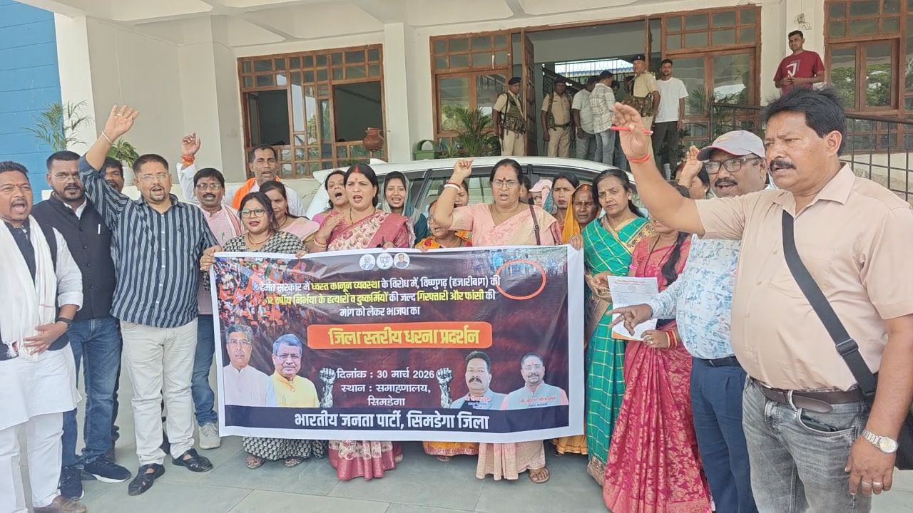 प्रदेश संगठन के निर्देशानुसार महिला मोर्चा की कार्यकर्ताओं ने एकजुट होकर विरोध प्रदर्शन किया और उपायुक्त सिमडेगा को राज्यपाल के नाम ज्ञापन सौंपा. इस दौरान कार्यकर्ताओं ने राज्य सरकार के खिलाफ जमकर नारेबाजी की और कानून व्यवस्था पर गंभीर सवाल उठाए.