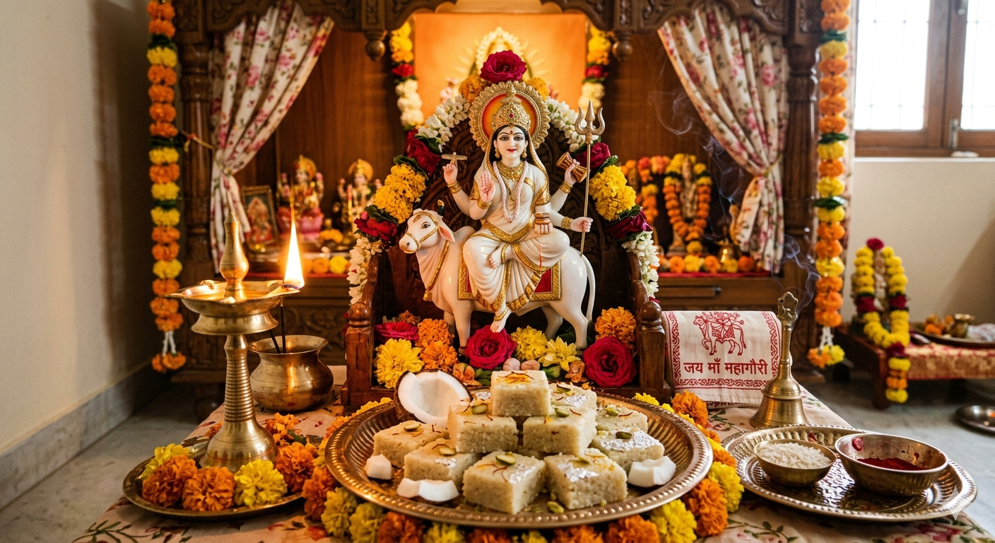 तैयार नारियल बर्फी को मां महागौरी को भोग लगाकर पूजा पूरी करें और फिर प्रसाद के रूप में सभी में बांटें.
