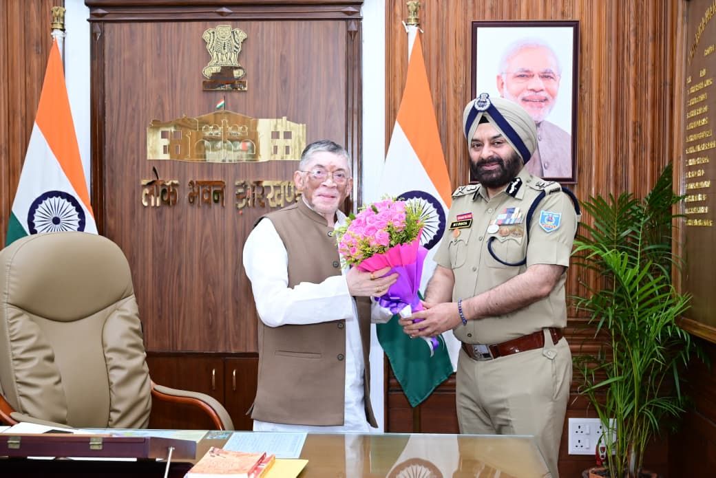Ranchi: झारखंड के राज्यपाल संतोष कुमार गंगवार से मंगलवार को लोक भवन में गृह रक्षा वाहिनी एवं अग्निशमन सेवा के डीजी एमएस भाटिया ने शिष्टाचार भेंट की. इस विशेष अवसर पर डीजी ने राज्यपाल को अग्निशमन सेवा सप्ताह के प्रतीक के रूप में बैज लगाया और उन्हें विभाग की आगामी गतिविधियों से अवगत कराया.