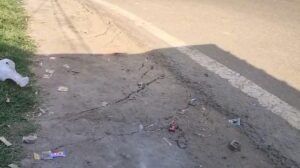 दो फीट तक नीचे धंसी सड़क