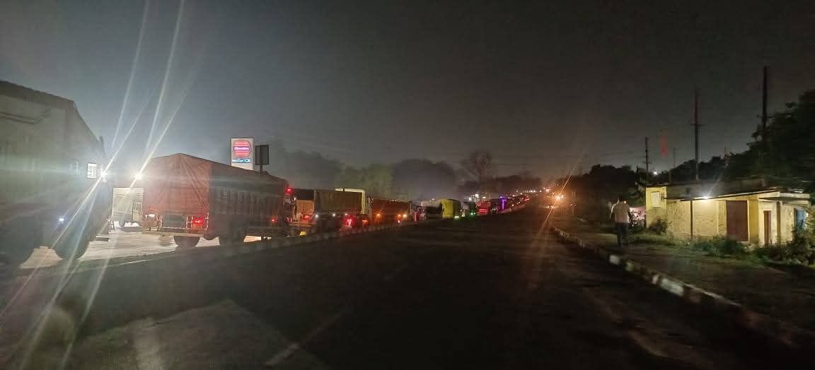 सड़क जाम होने के कारण बोकारो-धनबाद मुख्य मार्ग पर वाहनों की कई किलोमीटर लंबी कतार लग गई है. यात्री और मालवाहक वाहन जहां-तहां फंसे हुए हैं.