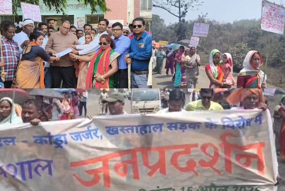 शिलान्यास के 4 महीने बाद भी जर्जर है चांडिल-कांड्रा रोड, ग्रामीणों ने किया प्रदर्शन