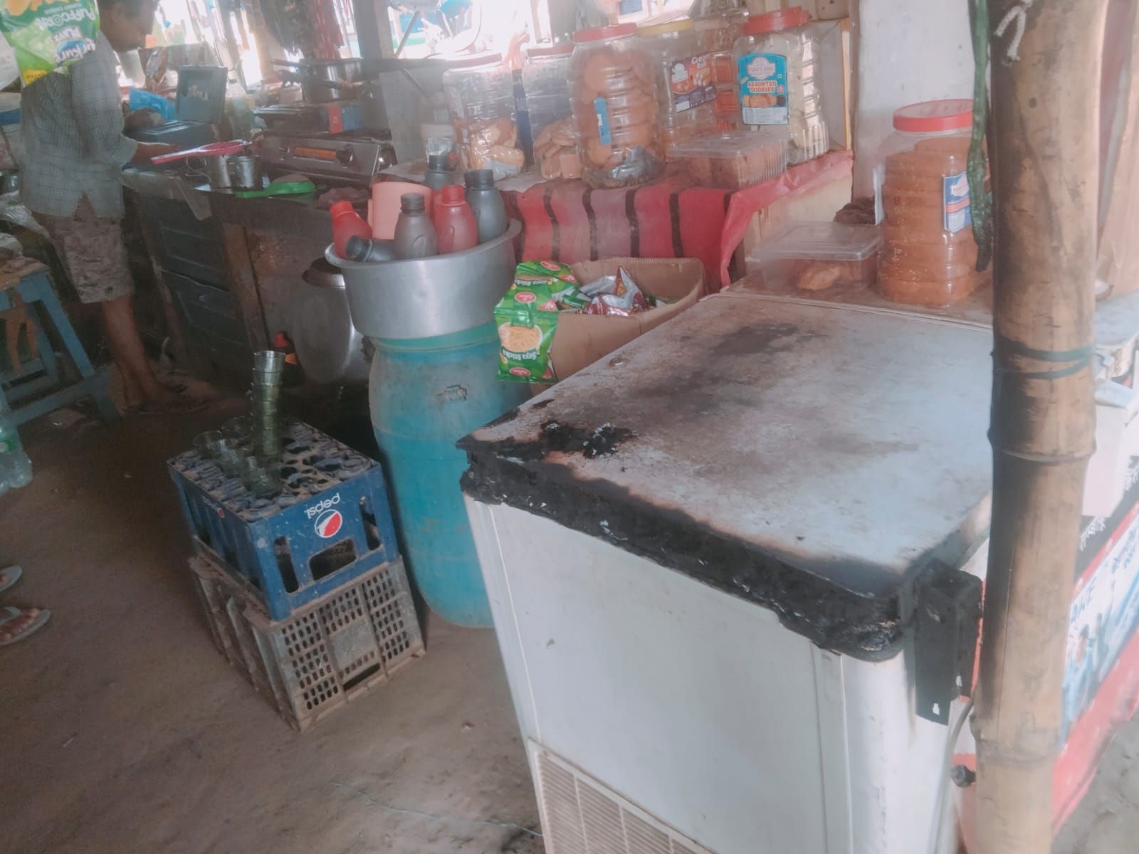 बताया जा रहा है कि आग कुछ समय तक दुकान में जलती रही, जिससे दुकान में रखा फ्रिज आंशिक रूप से जलकर क्षतिग्रस्त हो गया. इसके अलावा दुकान में रखे कई अन्य सामानों को भी नुकसान पहुंचा है.