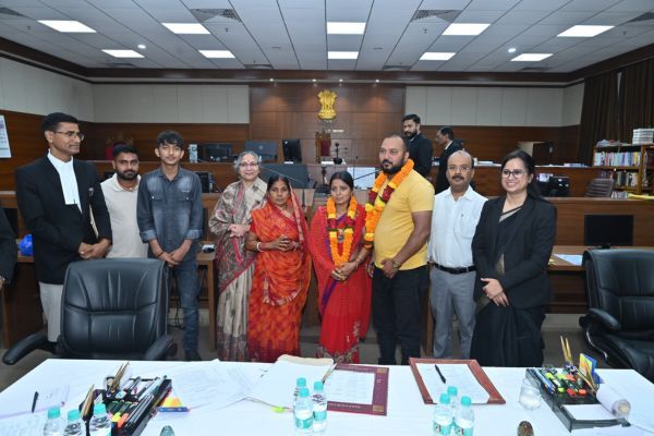रांची: आज राष्ट्रीय लोक अदालत का आयोजन झारखंड हाई कोर्ट समेत राज्य भर के व्यवहार न्यायालय में आयोजित हुआ, जिसका वर्चुअल उद्घाटन मुख्य अतिथि न्यायमूर्ति कार्यपालक अध्यक्ष झालसा सुजीत नारायण प्रसाद, विशिष्ट अतिथि के रूप में न्यायमूर्ति प्रदीप कुमार श्रीवास्तव, सदस्य सचिव कुमारी रंजना अस्थाना द्वारा जमशेदपुर न्याय मंडल से ऑनलाइन माध्यम से किया गया. वहीं आयोजन के दौरान वाहन दुर्घटना में अपने पति की मृत्यु हो जाने से पीड़ित पुष्पा देवी को 1, 17,73,919 का चेक दिया गया.