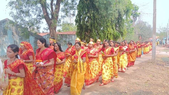 सरायकेला: श्री श्री सार्वजनिक हरि नाम संकीर्तन समिति, राजनगर चाॅगुआ के तत्वावधान में हरि मंदिर प्राण प्रतिष्ठा के पावन अवसर पर मंगलवार को भव्य कलश यात्रा का आयोजन किया गया.