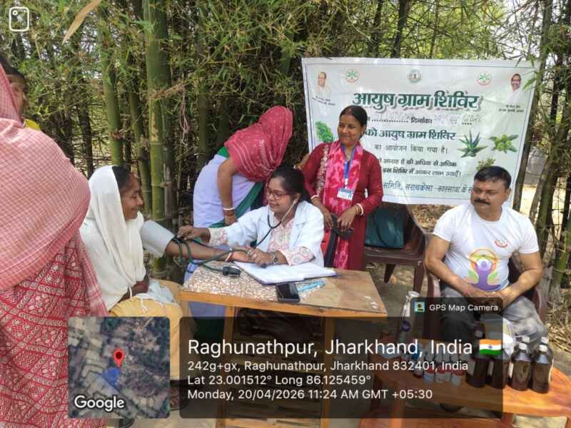 Saraikela: जिला आयुष समिति, सरायकेला-खरसावां के अंतर्गत संचालित “आयुष ग्राम” रघुनाथपुर में आज आयुष सामुदायिक स्वास्थ्य पदाधिकारी डॉ. शांति कुमारी द्वारा स्वास्थ्य शिविर का आयोजन किया गया.