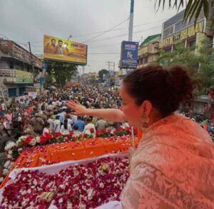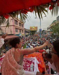 News Desk: बंगाल में चुनाव प्रचार के दौरान अभिनेत्री और मंडी सांसद कंगना रनौत एक रोड शो में सफेद रंग की जामदानी साड़ी पहनकर नजर आईं. इस पारंपरिक बंगाली साड़ी में उनका बेहद आकर्षक और सादगी भरा अंदाज देखने को मिला, जिसने सभी का ध्यान अपनी ओर खींच लिया.