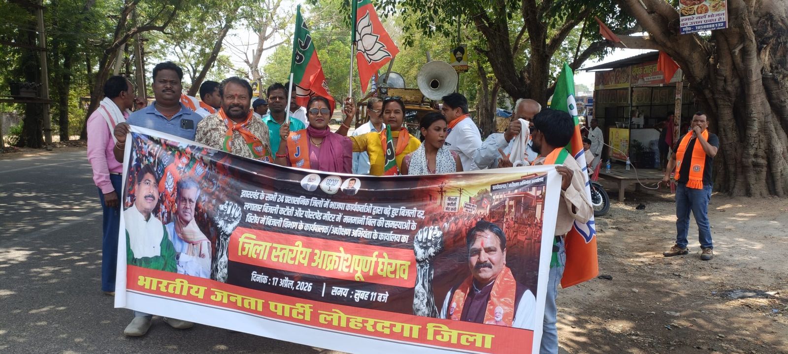 LOHARDAGA: झारखंड में बढ़े हुए बिजली दर, लगातार हो रही बिजली कटौती तथा स्मार्ट/पोस्टपेड मीटर के माध्यम से कथित मनमानी बिलिंग के विरोध में शुक्रवार को भारतीय जनता पार्टी द्वारा जिला स्तरीय आक्रोश प्रदर्शन किया गया. यह कार्यक्रम पत्तराटोली स्थित बिजली कार्यालय के समक्ष आयोजित हुआ, जिसमें बड़ी संख्या में भाजपा कार्यकर्ता एवं पदाधिकारी शामिल हुए.