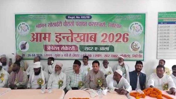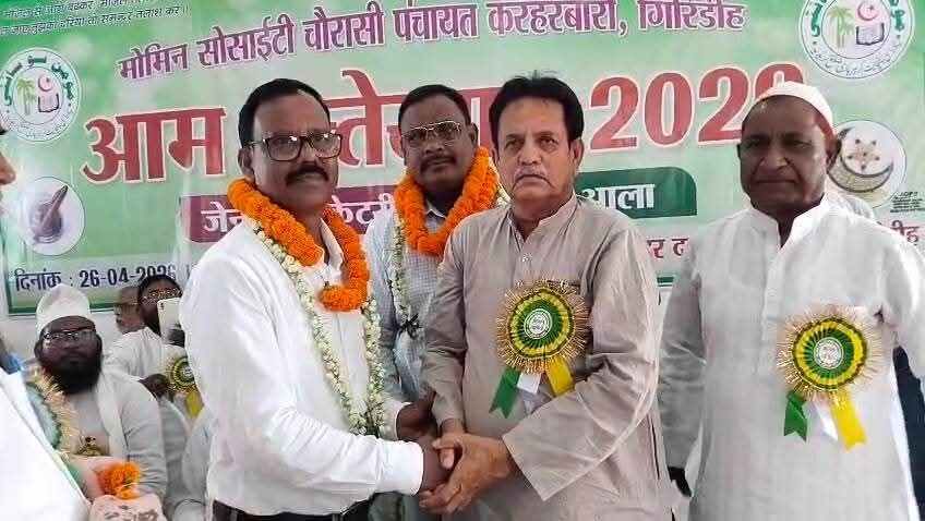 Giridih: गिरिडीह जिले के करहरबारी चौरासी पंचायत अंतर्गत मोमिन सोसाइटी का आम इंटेखाबी प्रोग्राम शांतिपूर्ण और उत्साहपूर्ण माहौल में संपन्न हुआ. कार्यक्रम में समाज के बड़ी संख्या में लोग शामिल हुए और पूरी चुनाव प्रक्रिया पारदर्शिता के साथ संपन्न कराई गई. इस दौरान समाज के लोगों ने एकजुटता और भाईचारे की मिसाल पेश की.