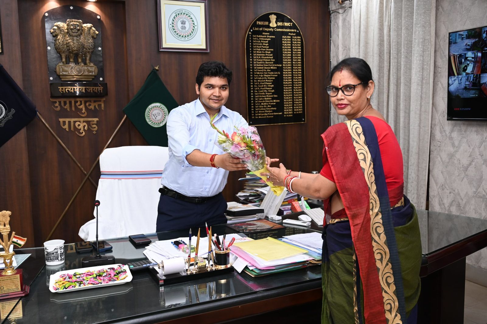 पाकुड़ : नगर परिषद अध्यक्ष सबरी पाल एवं उपाध्यक्ष राणा ओझा ने उपायुक्त मनीष कुमार से शिष्टाचार मुलाकात की और उन्हें पुष्प गुच्छ भेंट कर स्वागत किया. मुलाकात के दौरान नगर परिषद क्षेत्र में चल रहे विकास कार्यों, नागरिक सुविधाओं के सुदृढ़ीकरण और विभिन्न योजनाओं के प्रभावी क्रियान्वयन को लेकर विस्तृत चर्चा की गई. प्रतिनिधियों ने क्षेत्र में जारी योजनाओं की जानकारी दी और भविष्य की प्राथमिकताओं तथा आवश्यकताओं से उपायुक्त को अवगत कराया.