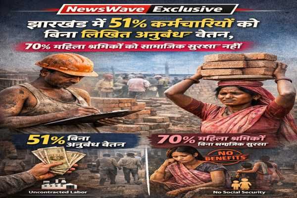 NewsWave Exclusive: झारखंड में 51% कर्मचारियों को बिना लिखित अनुबंध वेतन, 70% महिला श्रमिकों को सामाजिक सुरक्षा नहीं