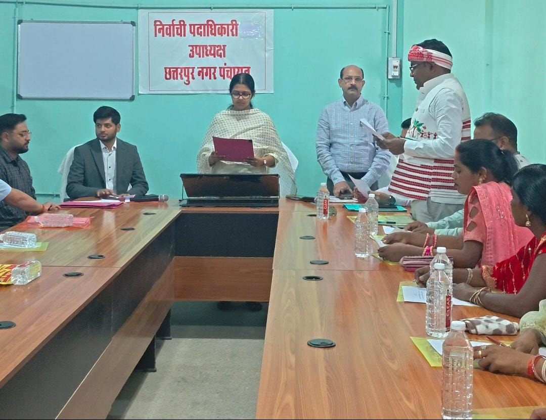 Palamu: पलामू उपायुक्त समीरा एस ने गुरुवार को छत्तरपुर अनुमंडल सभागार में नवनिर्वाचित अध्यक्ष अरविंद कुमार गुप्ता और सभी वार्ड पार्षदों को पद एवं गोपनीयता की शपथ दिलाई. इस मौके पर उप निर्वाचन पदाधिकारी रतन सिंह, अन्य पदाधिकारी और गणमान्य लोग मौजूद थे. मौके पर छत्तरपुर नगर पंचायत के उपाध्यक्ष पद के लिए चुनाव प्रक्रिया भी संपन्न कराई गई. निर्वाचन प्रक्रिया के बाद मंजीत कुमार यादव उपाध्यक्ष निर्वाचित हुए. उन्हें कुल 9 मत प्राप्त हुए जबकि उनके प्रतिद्वंदी दीपक कुमार को 7 मत मिले. निर्वाची पदाधिकारी सह जिला परिवहन पदाधिकारी द्वारा विजयी प्रत्याशी को प्रमाण पत्र दिया गया. इस अवसर पर प्रखंड विकास पदाधिकारी आशीष कुमार सहित अन्य कर्मी उपस्थित रहे.