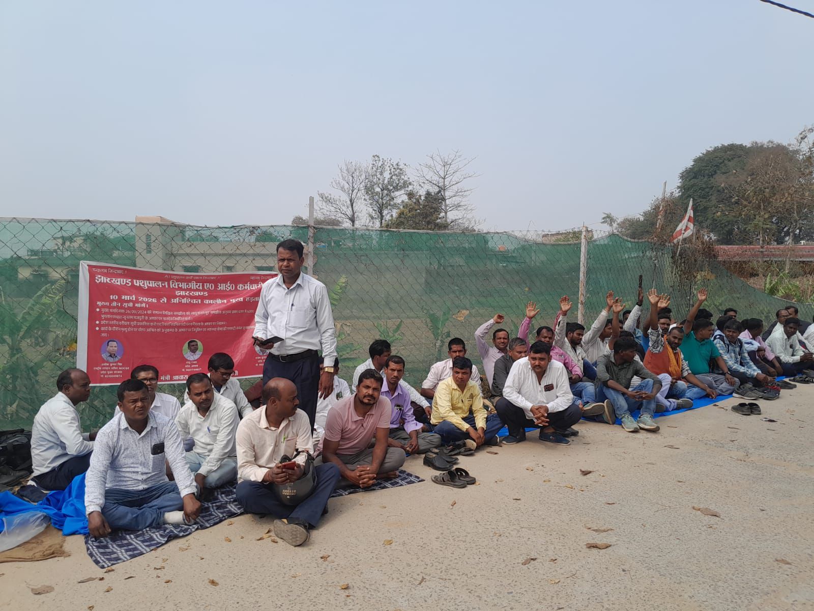 रांची: झारखंड पशुपालन विभागीय एआई कर्मचारी संघ की ओर से अपनी विभिन्न मांगों को लेकर 10 मार्च 2026 को मंत्री आवास परिसर में राज्यस्तरीय अनिश्चितकालीन धरना और हड़ताल जारी रही. संघ के नेताओं का कहना है कि विभाग में लगभग तीन हजार एआई कर्मी वर्षों से काम कर रहे हैं, लेकिन उन्हें अब तक स्थायी व्यवस्था और उचित मानदेय नहीं मिल पाया है.