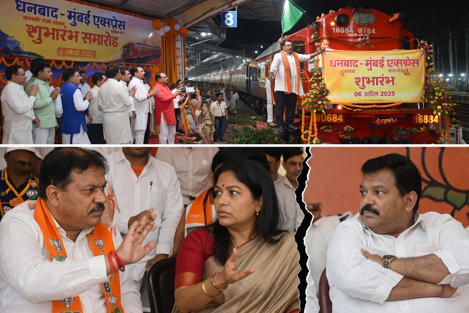 रांची: धनबाद के रेल इतिहास में 6 अप्रैल की रात केवल एक नई ट्रेन की शुरुआत के लिए नहीं, बल्कि भारतीय जनता पार्टी के भीतर धधकती गुटबाजी के ज्वालामुखी के फटने के लिए याद की जाएगी. पटरी पर धनबाद-मुंबई एक्सप्रेस दौड़ी, लेकिन प्लेटफार्म नंबर 8 पर मचे सियासी दंगल ने विकास के शोर को फीका कर दिया. जिस उत्सव को कोयलांचल की एकता का प्रतीक होना था, वह वर्चस्व की लड़ाई का अखाड़ा बन गया. अपनों को ही अपमानित कर किनारे करने के इस खेल ने धनबाद से लेकर दिल्ली तक की सियासत में भूचाल ला दिया है. ट्रेन तो मुंबई पहुंच जाएगी, लेकिन धनबाद भाजपा के भीतर की जो दरारें इस उद्घाटन ने दिखाई हैं, उन्हें भरने में कितनी इंजन की शक्ति लगेगी, यह आने वाला वक्त बताएगा.