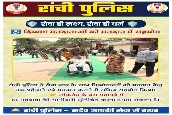एसएसपी राकेश रंजन ने कहा कि हमारा उद्देश्य केवल शांतिपूर्ण मतदान कराना नहीं है, बल्कि यह सुनिश्चित करना भी है कि समाज का अंतिम व्यक्ति, चाहे वह शारीरिक रूप से अक्षम ही क्यों न हो, बिना किसी बाधा के अपने मताधिकार का प्रयोग कर सके. जब एक दिव्यांग मतदाता वोट डालकर गर्व के साथ अपनी उंगली पर लगी स्याही दिखाता है, तो वह हमारे लोकतंत्र की सबसे खूबसूरत तस्वीर होती है. रांची पुलिस इस गौरव का हिस्सा बनकर खुद को सम्मानित महसूस कर रही है.