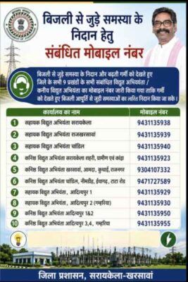 सरायकेला : भीषण गर्मी में बिजली संकट से निपटने के लिए प्रशासन तैयार, 9 प्रखंडों के बिजली इंजीनियरों के मोबाइल नंबर जारी