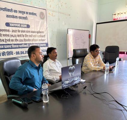 Seraikela-Kharsawan: उपायुक्त सह जिले के प्रधान जनगणना पदाधिकारी नीतीश कुमार सिंह के निर्देश पर जनगणना के लिए फील्ड ट्रेनर्स को ट्रेनिंग दी गयी. भारत की जनगणना 2027 के प्रथम चरण में मकान सूचीकरण एवं मकानों की गणना (HLO) कार्य के सफल क्रियान्वयन के लिए जिला स्तर पर तीन दिवसीय प्रशिक्षण कार्यक्रम का आयोजन किया गया. प्रशिक्षण आज 10 अप्रैल 2026 को प्रखंड कार्यालय सभागार, सरायकेला में अपर उपायुक्त जयवर्धन कुमार की उपस्थिति में संपन्न हुआ. प्रशिक्षण कार्यक्रम 8 से 10 अप्रैल 2026 तक आयोजित किया गया, जिसमें विभिन्न प्रखंडों के प्रखंड विकास पदाधिकारी, नगर परिषद एवं नगर पंचायत के कार्यपालक पदाधिकारी-सह-चार्ज जनगणना पदाधिकारी तथा नामित फील्ड ट्रेनर्स ने सहभागिता की.