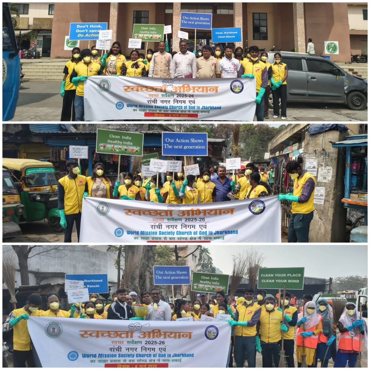 रांची: शहर को स्वच्छ और सुंदर बनाने के उद्देश्य से स्वच्छ सर्वेक्षण 2025-26 के तहत आज रांची में बड़े पैमाने पर विशेष स्वच्छता अभियान चलाया गया. यह अभियान रांची नगर निगम और एनजीओ “वर्ल्ड मिशन सोसायटी चर्च ऑफ गॉड इन झारखण्ड” के संयुक्त तत्वावधान में आयोजित किया गया, जिसमें निगम कर्मियों, एनजीओ के स्वयंसेवकों और स्थानीय नागरिकों ने बढ़-चढ़कर हिस्सा लिया.