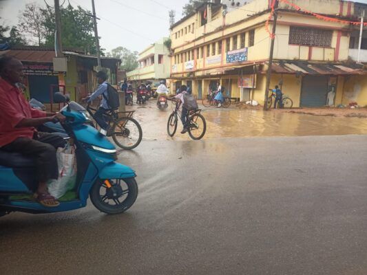जलजमाव से छात्रों और ग्रामीणों को परेशानी