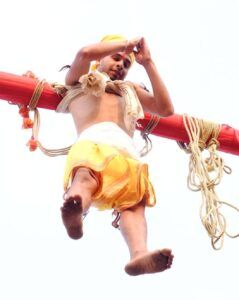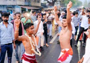 इस दिन भोक्ता शष्ठांग दंड, मशाल जुलूस, तपती दोपहर में आग पर चलना और अपने शरीर के विभिन्न अंगों—जैसे पीठ, पैर और जीभ में लोहे के कील चुभाकर डांग या खुट्टा की सहायता से लगभग 35 से 40 फीट ऊंचाई पर झूलते हुए नृत्य करते हैं. यह दृश्य रोंगटे खड़े कर देने वाला होता है, जिसे देखने के लिए हजारों-लाखों लोग जुटते हैं.